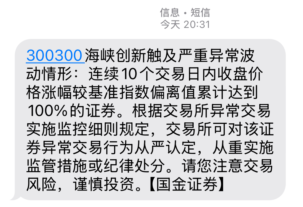 $海峡创新(SZ300300)$ 今晚有收到短信么?怎么看?