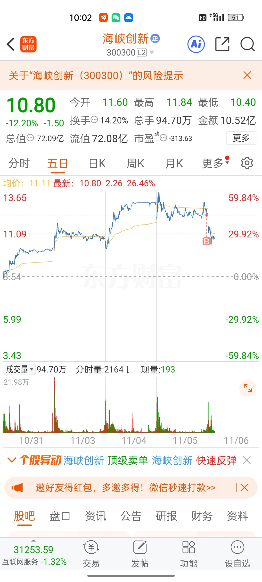 $海峡创新(SZ300300)$ 小丑是我,昨日入坑,道心崩溃啊
