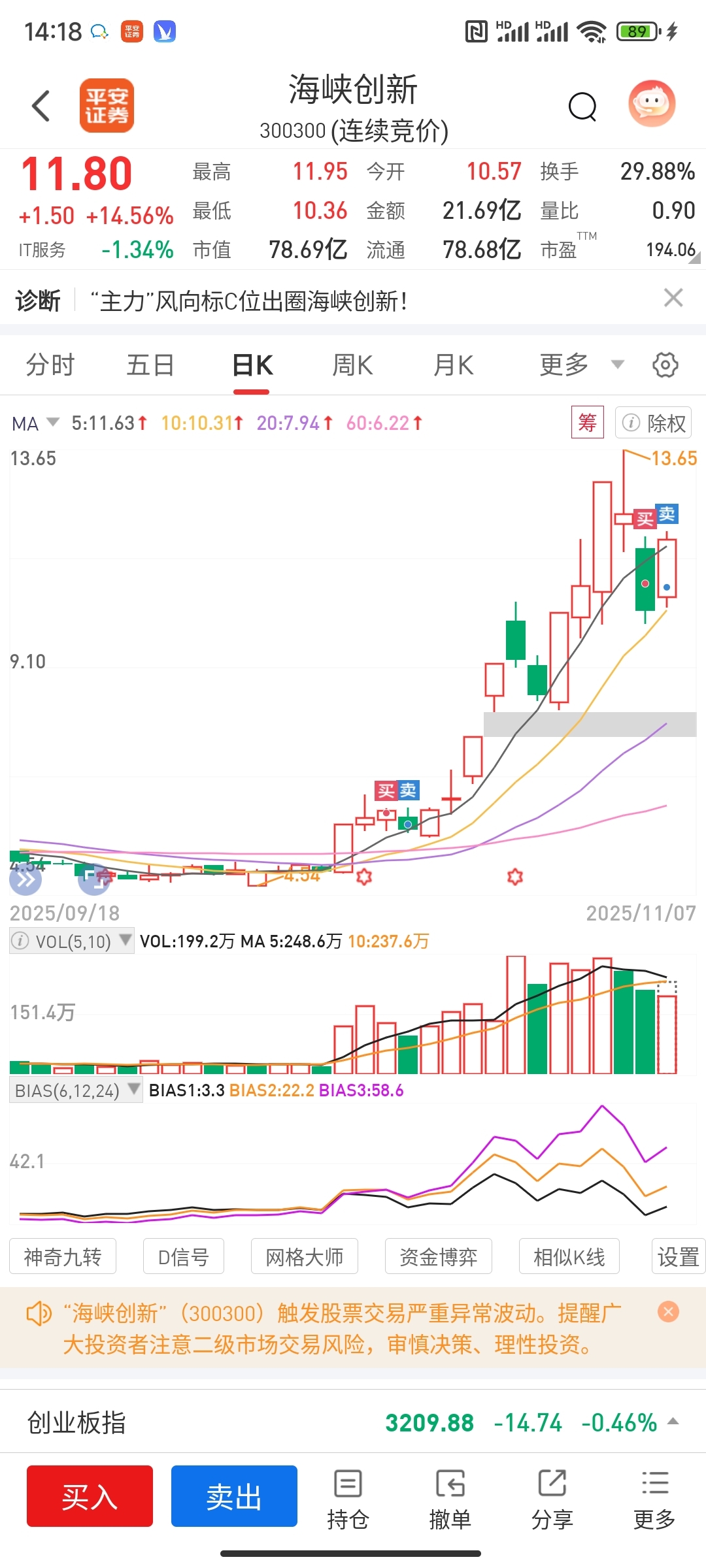 $海峡创新(SZ300300)$ 有谁比我惨啊!早上卖了下午就拉升!