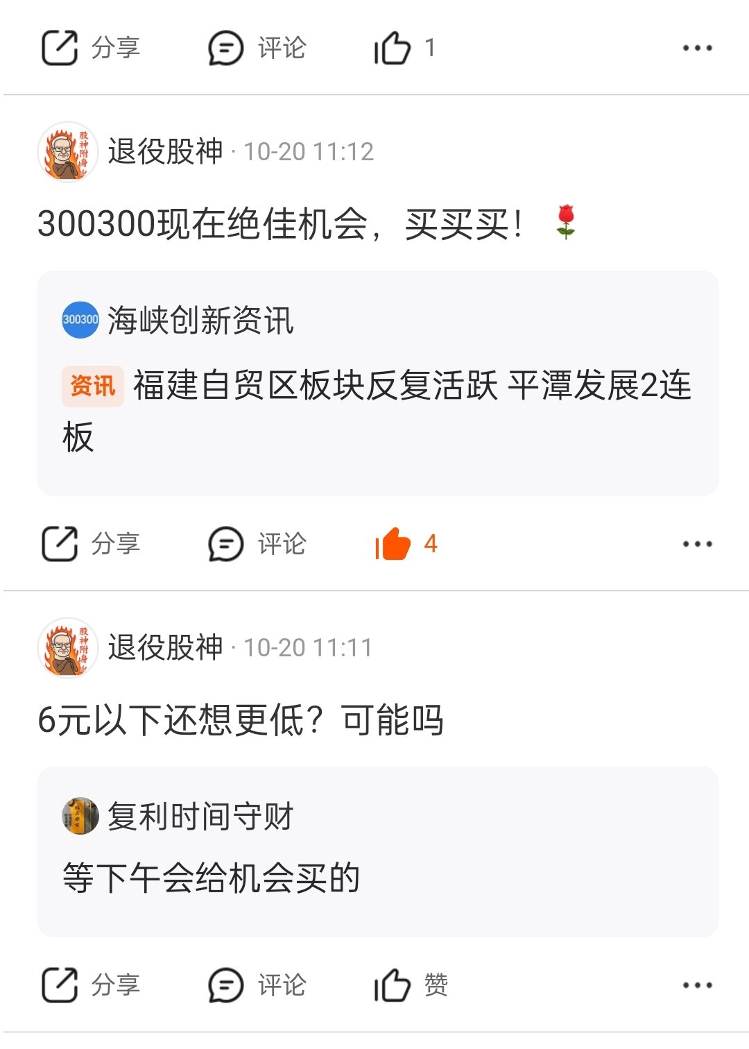 大家自己看,10月20日的消息,我不喜欢马后炮,没意思,很多韭菜亏钱那是不冤啊,海峡创新300300这么好的股票不买,那是没有办法了!