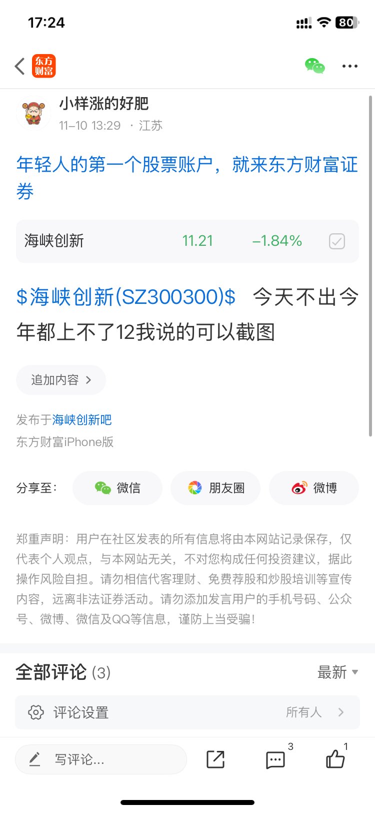 温馨提示: 1.根据《证券法》规定,禁止编造、传播虚假信息或者误导性信息,扰乱证券市场;2.用户在本社区发表的所有资料、言论等仅代表个人观点,与本网站立场无关,不对您构成任何投资建议。用户应基于自己的独立判断,自行决定证券投资并承担相应风险。《东方财富社区管理规定》