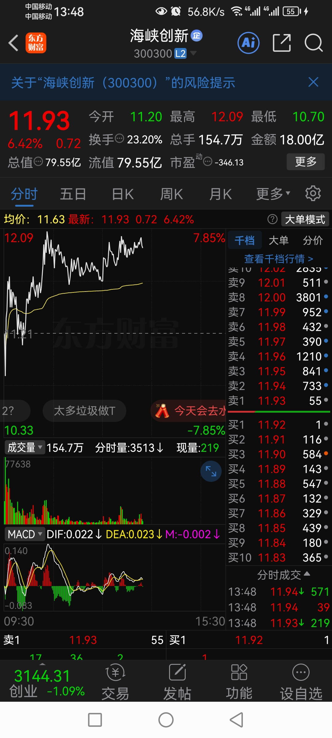 $海峡创新(SZ300300)$ 分时图有做双头的感觉清仓了。感谢感谢