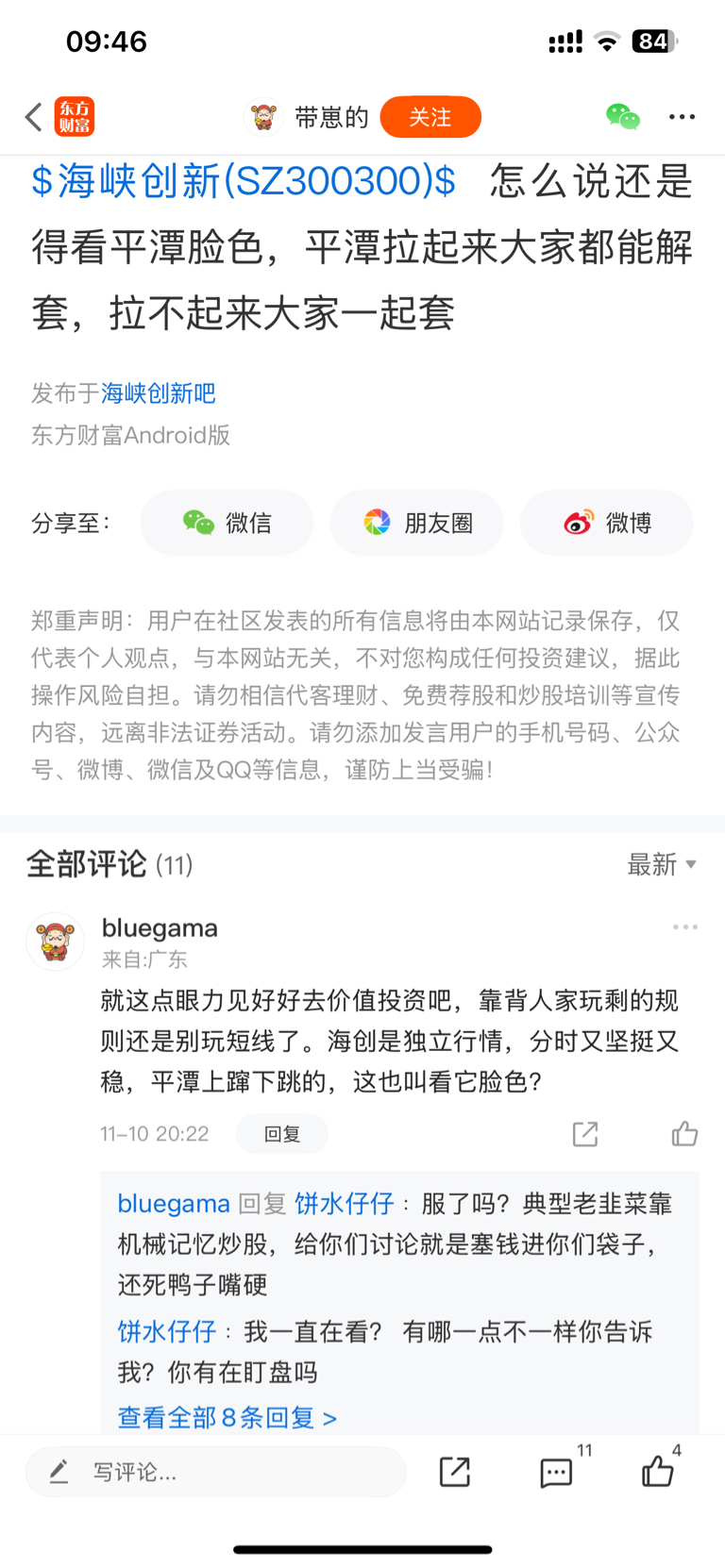 温馨提示: 1.根据《证券法》规定,禁止编造、传播虚假信息或者误导性信息,扰乱证券市场;2.用户在本社区发表的所有资料、言论等仅代表个人观点,与本网站立场无关,不对您构成任何投资建议。用户应基于自己的独立判断,自行决定证券投资并承担相应风险。《东方财富社区管理规定》