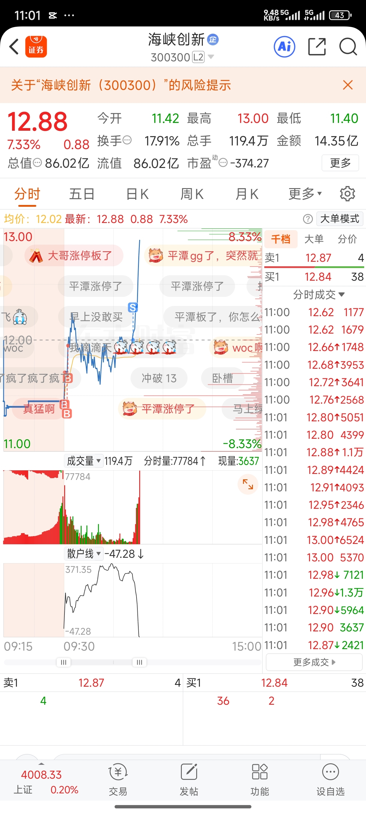 $海峡创新(SZ300300)$ %!%?#…:<$>