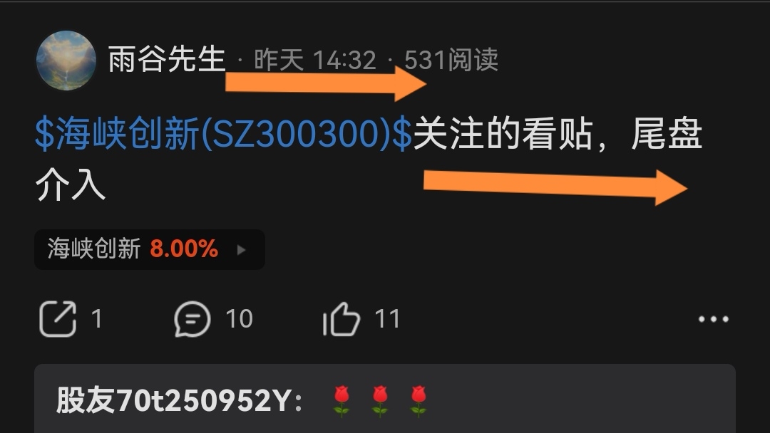 $海峡创新(SZ300300)$ 恭喜关注的股友,今天早上低吸,8个点全部出局。