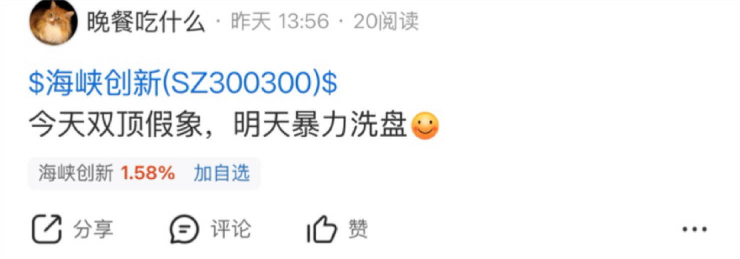温馨提示: 1.根据《证券法》规定,禁止编造、传播虚假信息或者误导性信息,扰乱证券市场;2.用户在本社区发表的所有资料、言论等仅代表个人观点,与本网站立场无关,不对您构成任何投资建议。用户应基于自己的独立判断,自行决定证券投资并承担相应风险。《东方财富社区管理规定》