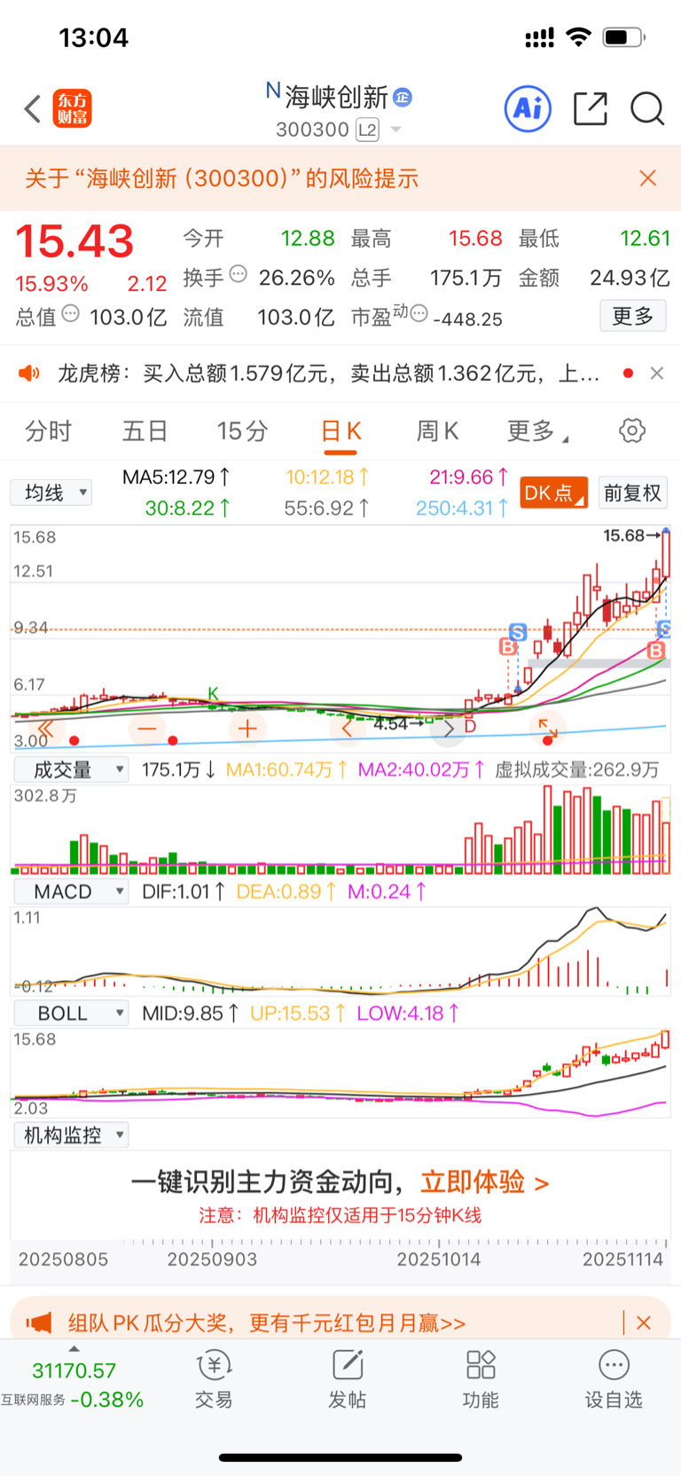 $海峡创新(SZ300300)$ 15.53卖了,真讨厌,磨磨唧唧的,平潭发展给你打了多好的基础