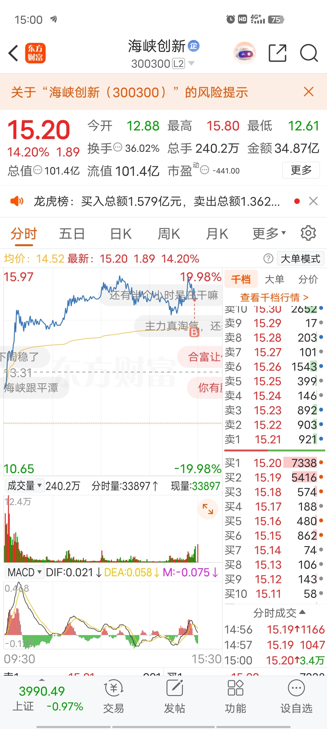 $海峡创新(SZ300300)$ 兄弟们不要怕,我来了,带你们起飞