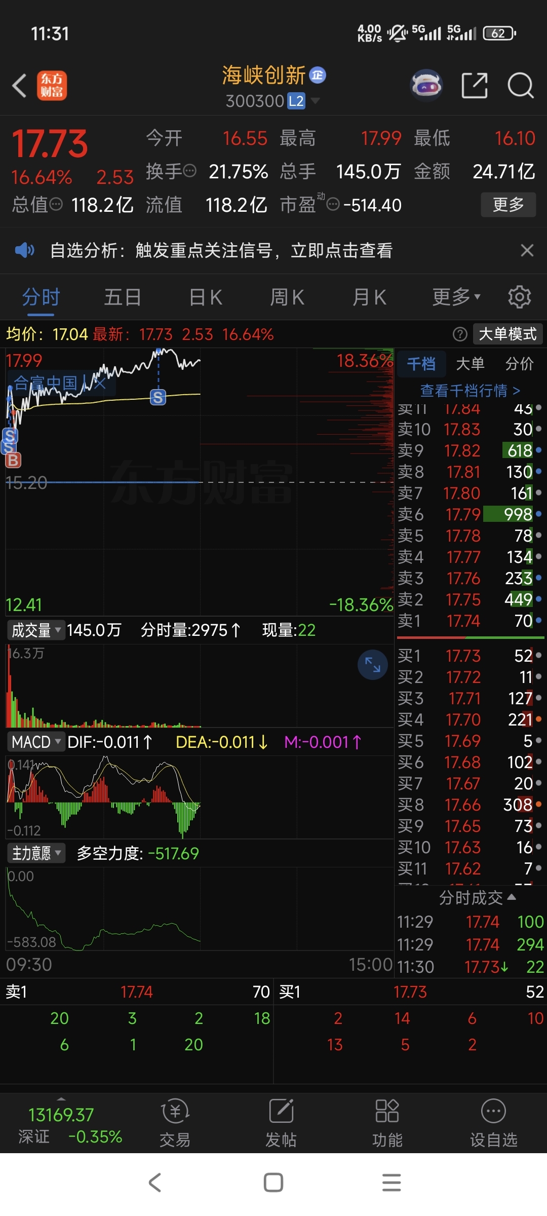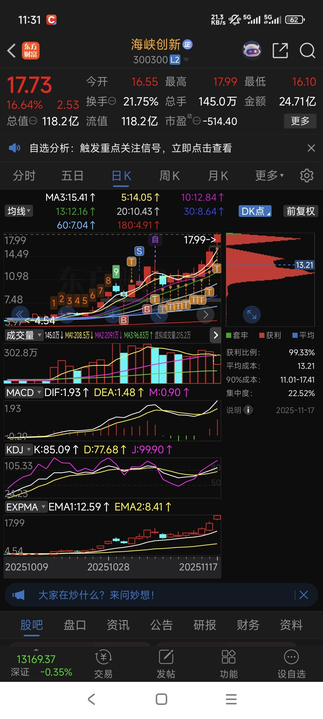 $海峡创新(SZ300300)$ 。。。。。。。真的强。周五开始减仓的难受了啊。