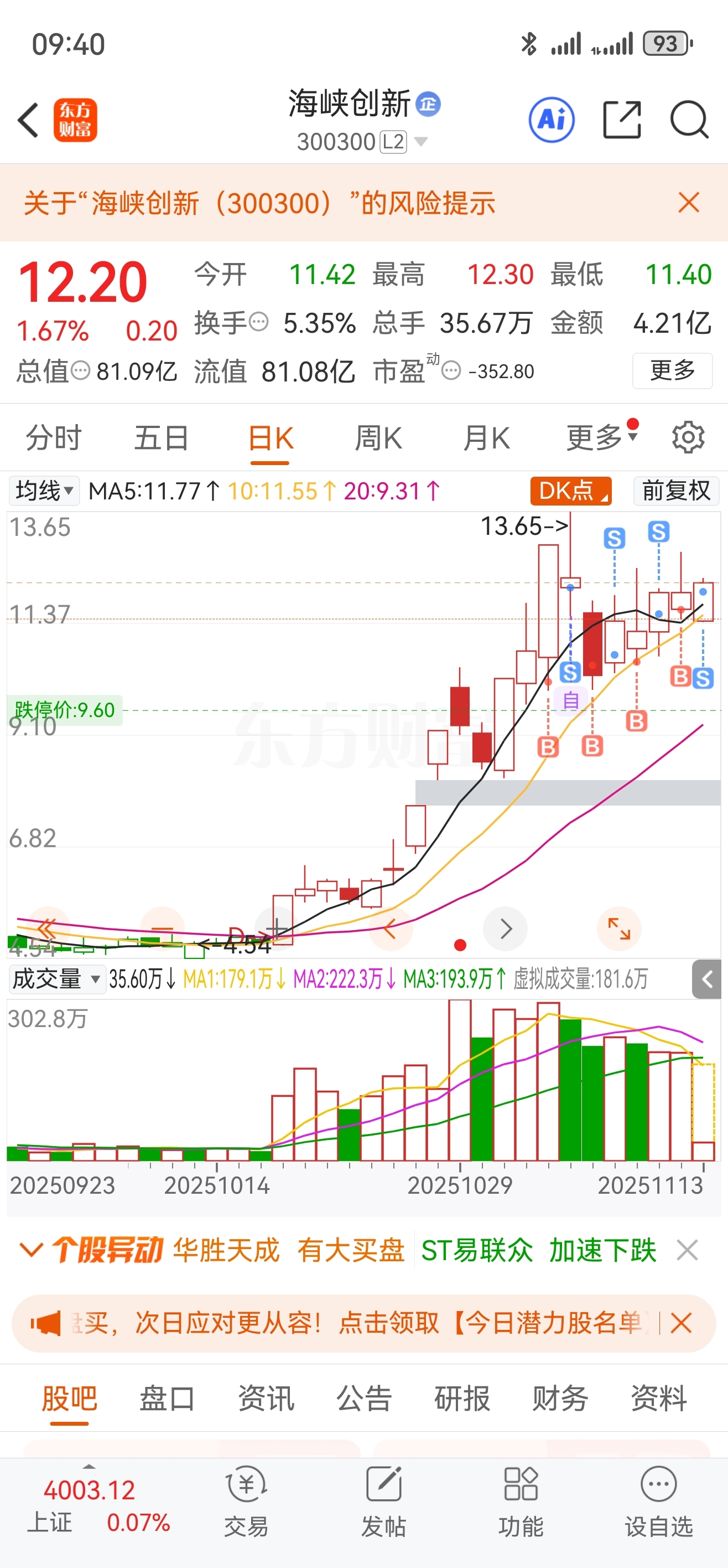 $海峡创新(SZ300300)$ 大腿啊