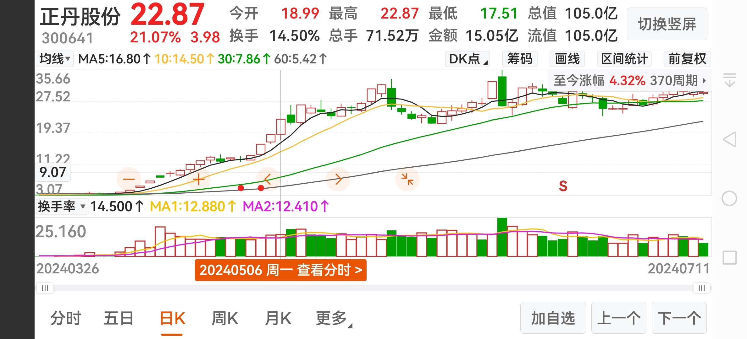 正丹股份24.5.7日停牌核查,5.14日复牌只跌了3.84%,第二天20%涨停
