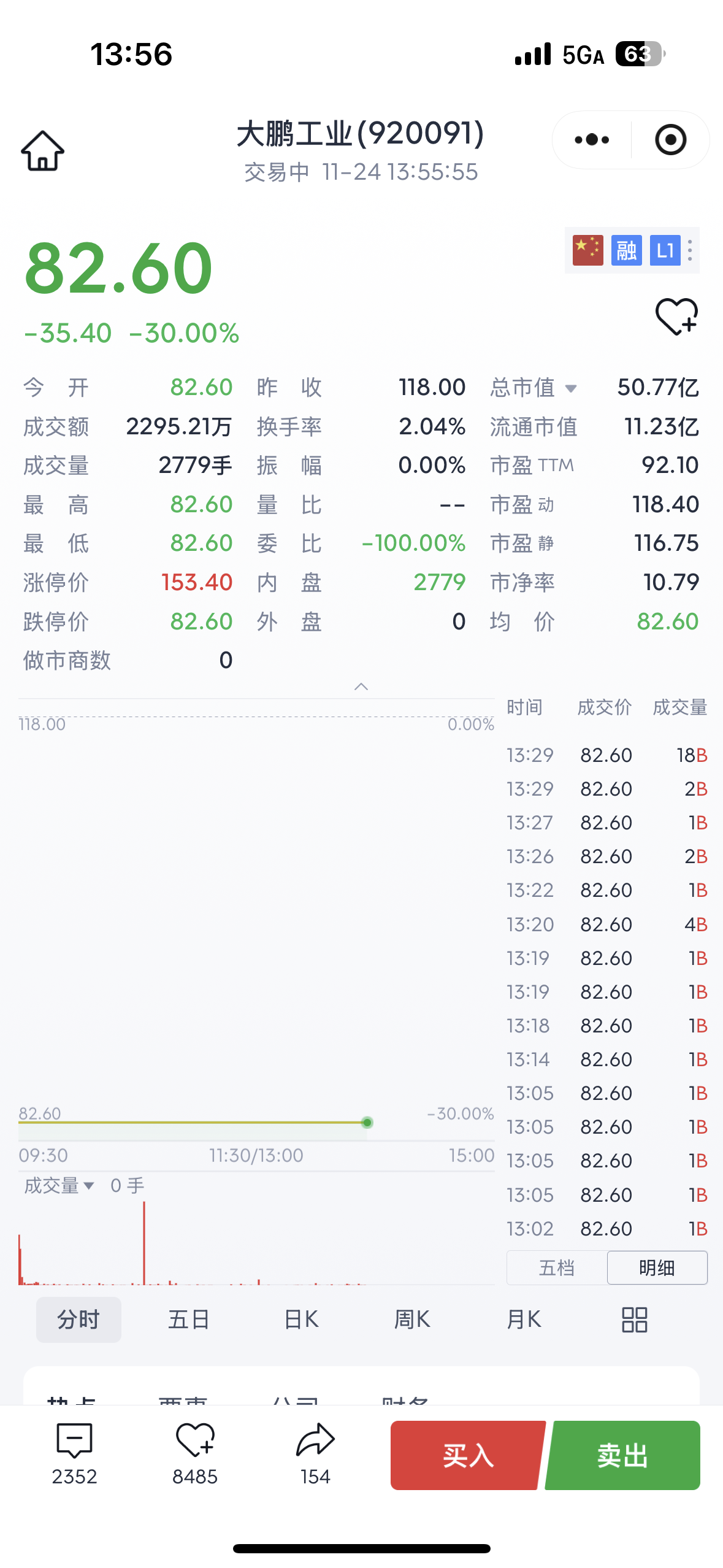 所有的小韭菜们,你们就知足吧,你们看看一天30个点,的都没人买,都没有成交的,谁的会买这种垃圾股,的真牛逼啊,进去了已经亏50个点了,的牛逼啊,这个股票的就是哥的你的韭菜再也长不出来,只要长出来就长出来,就割了个逼的