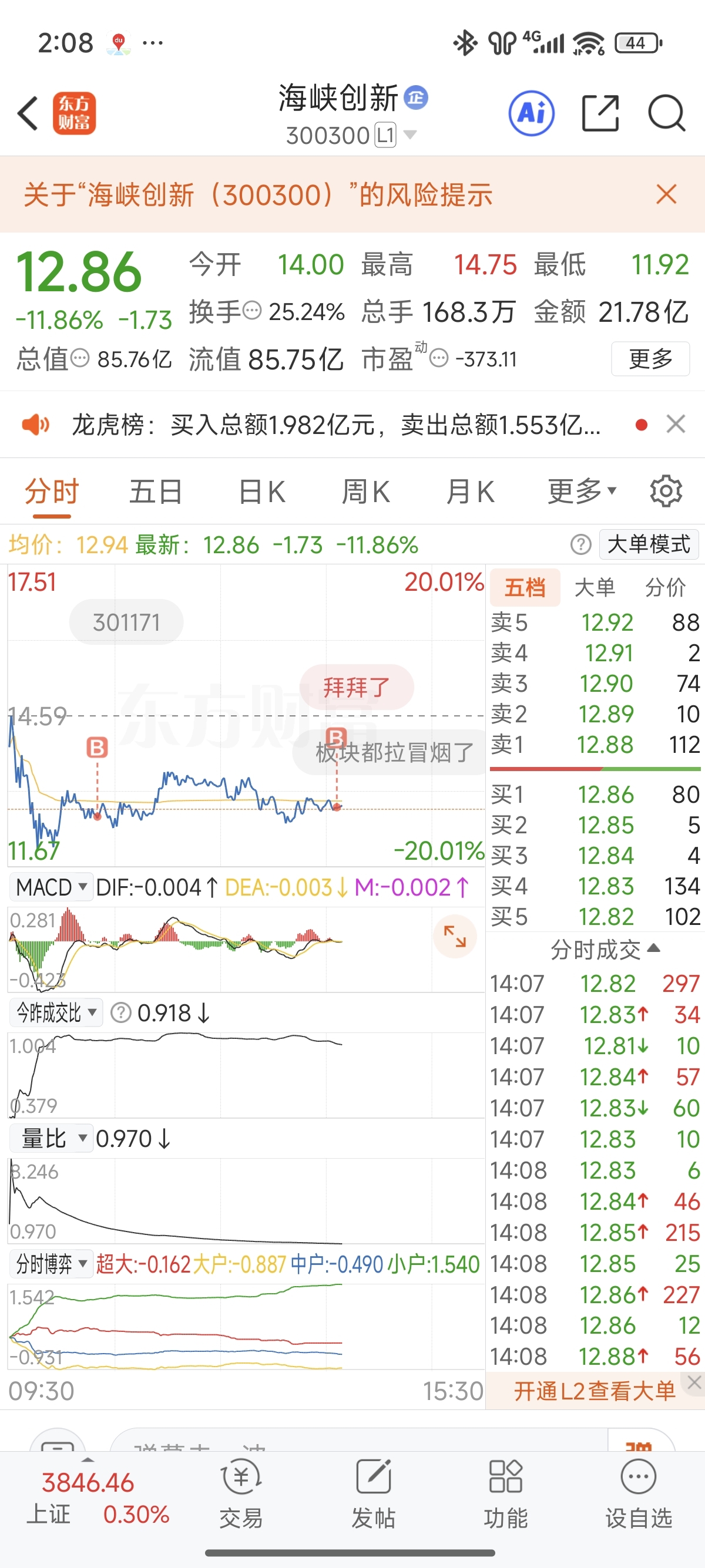 $海峡创新(SZ300300)$ 梭哈一波,不知是福还是祸