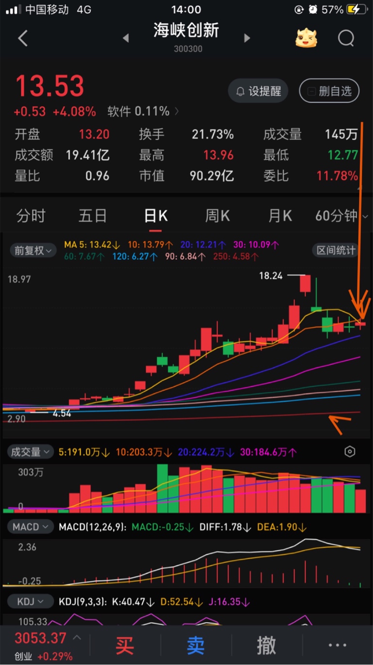 看见没?这里压力线把脑袋摁住了!所以要等到他自行整理好,等到往上突破站稳,5天均线重新往上才是合适时机!反之,往下走,就不用看了。
