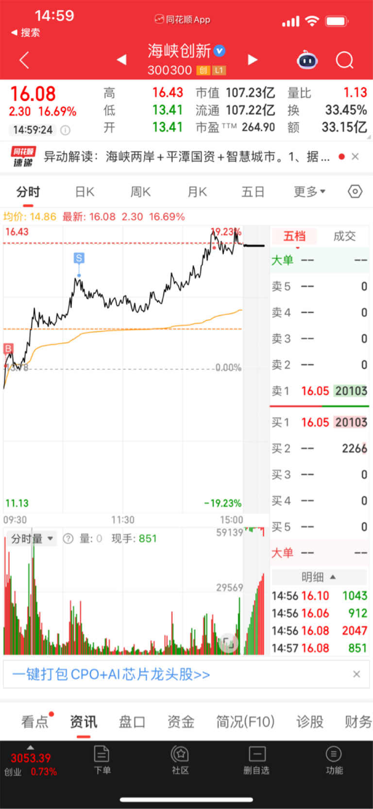 $海峡创新(SZ300300)$ 今天做的T有点可惜,15.5出,挂单14.7入,下午打到14.8没给机会,只能16才进去