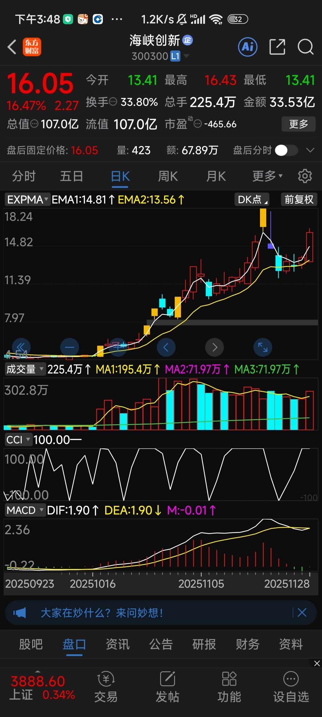 $海峡创新(SZ300300)$ 技术上买入吃肉