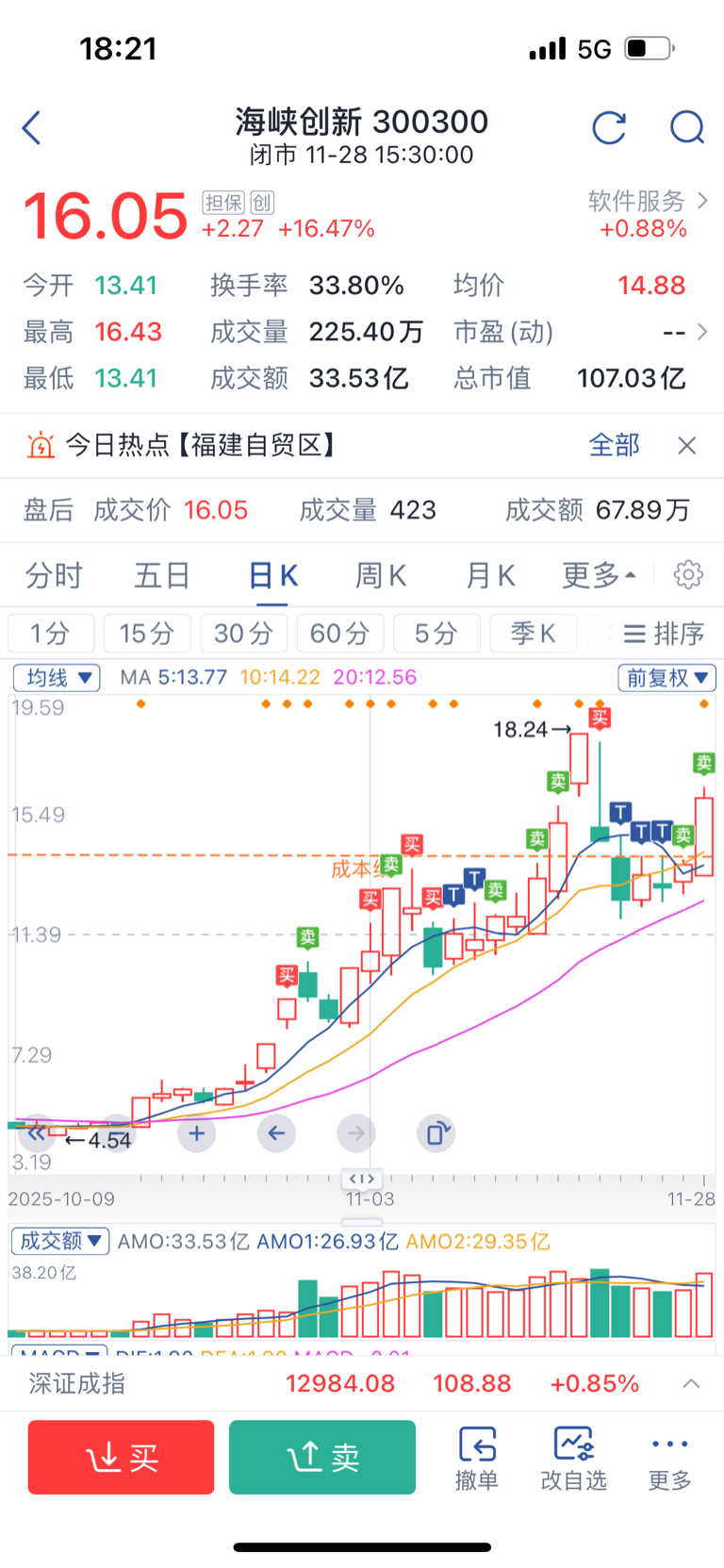 $海峡创新(SZ300300)$ 感谢《海峡创新》今天暂时全部止盈16W+,下个月给机会再入场;祝福场内的家人们吃大肉;
