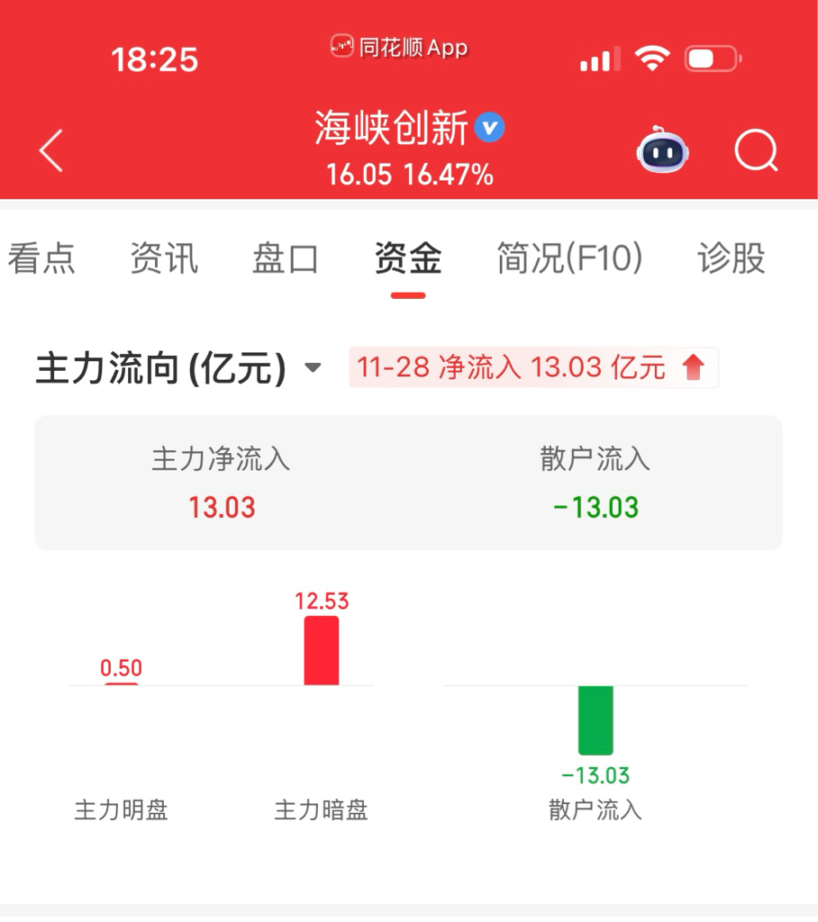 $海峡创新(SZ300300)$ 周五暗盘大资金流入12亿