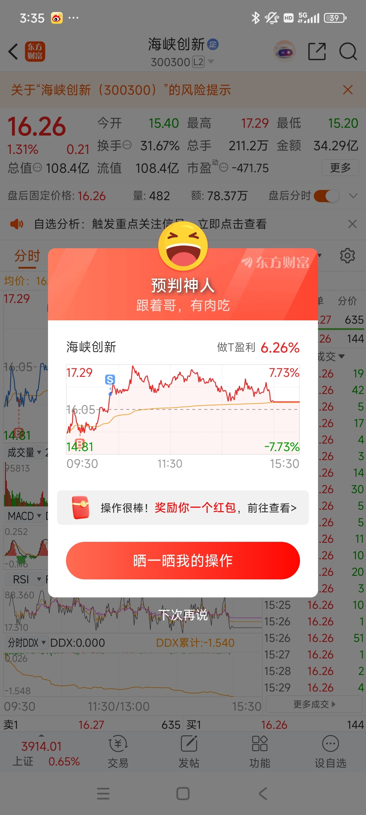 $海峡创新(SZ300300)$ 今年最成功的两个票 一个是你 一个南网