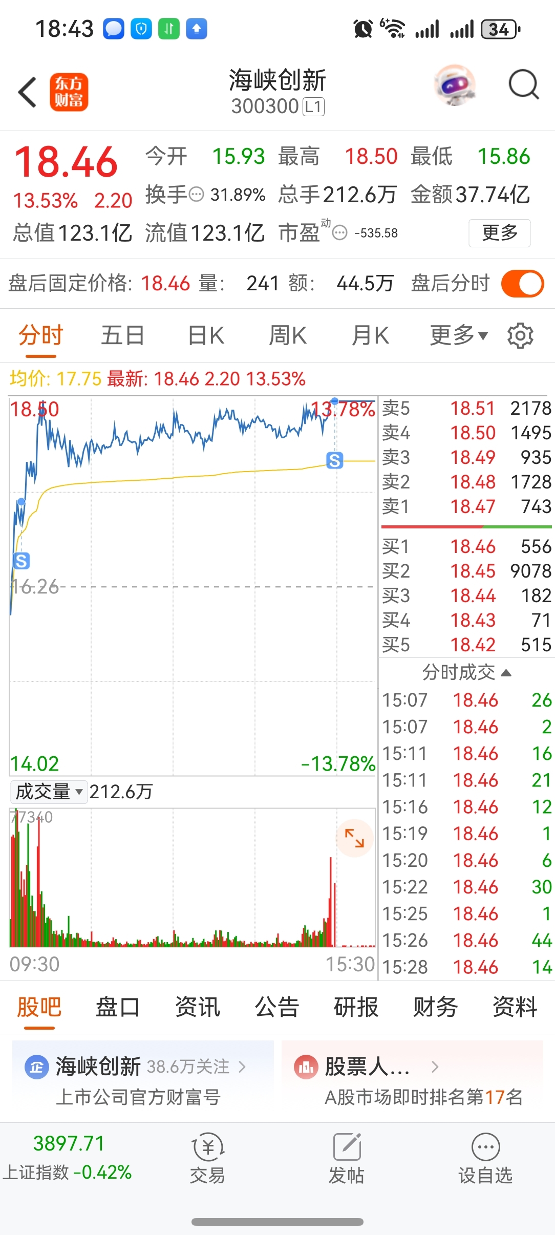 $海峡创新(SZ300300)$ 已打电话举报,因为劳资我卖的菜多了