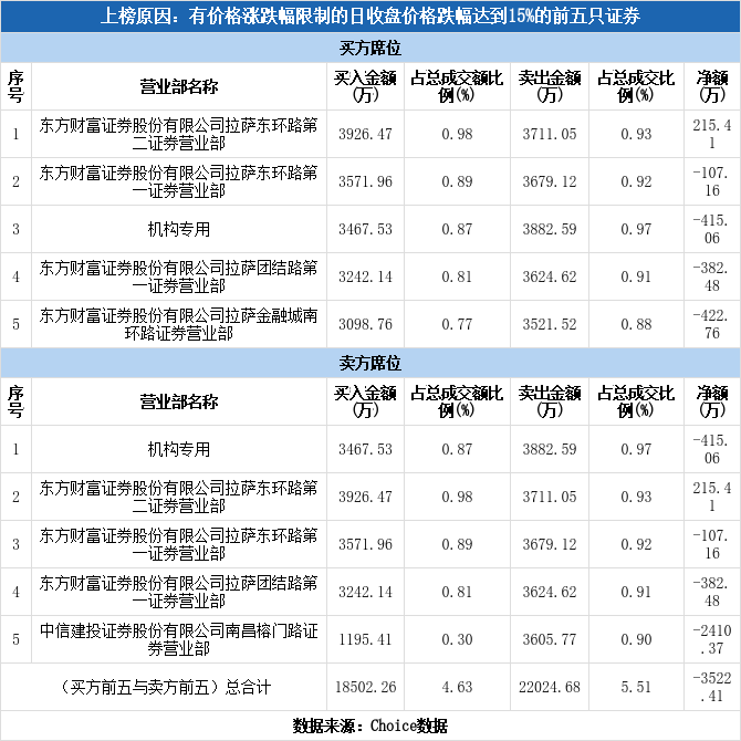 多主力现身龙虎榜,海峡创新下跌15.38%(12-03)