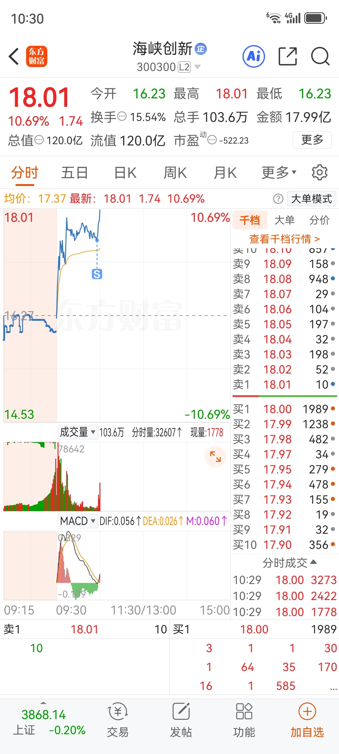 $海峡创新(SZ300300)$ 就早卖1秒,我真C了,啊啊啊啊啊