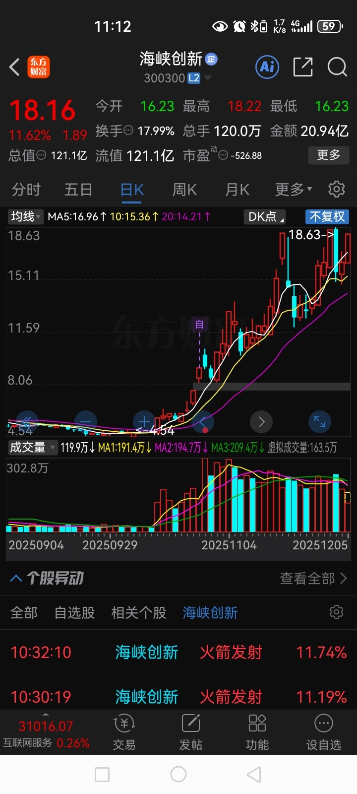 $海峡创新(SZ300300)$ 心动又不敢动