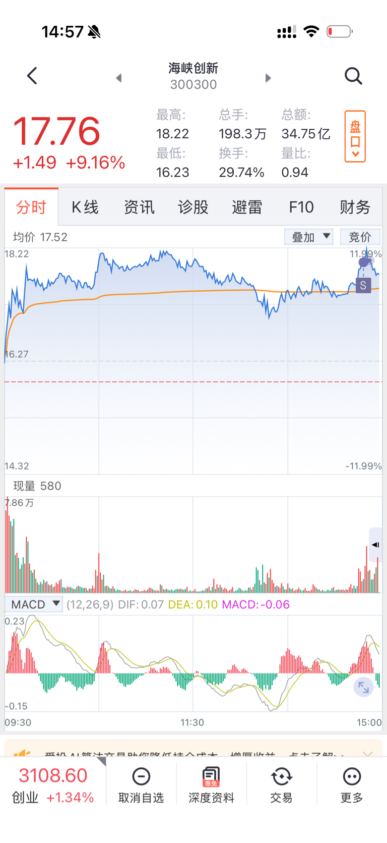 $海峡创新(SZ300300)$