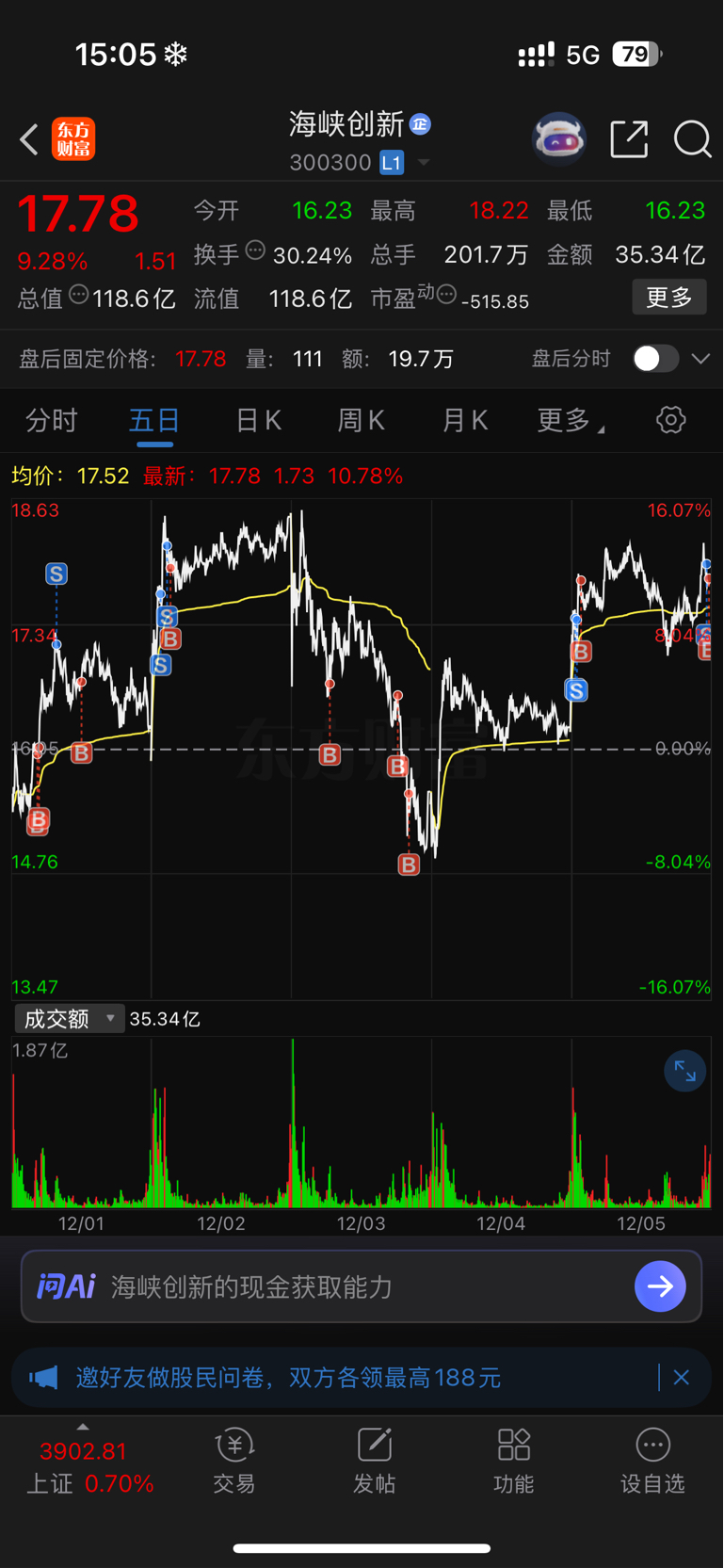 $海峡创新(SZ300300)$ 做 t 做的持仓越来越少