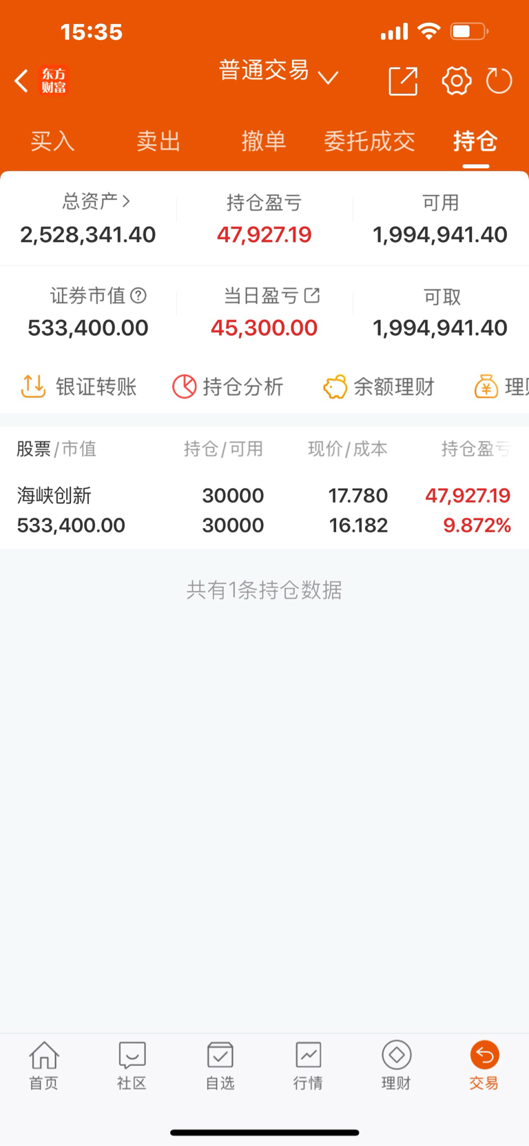 今日无操作:持有:海峡创新