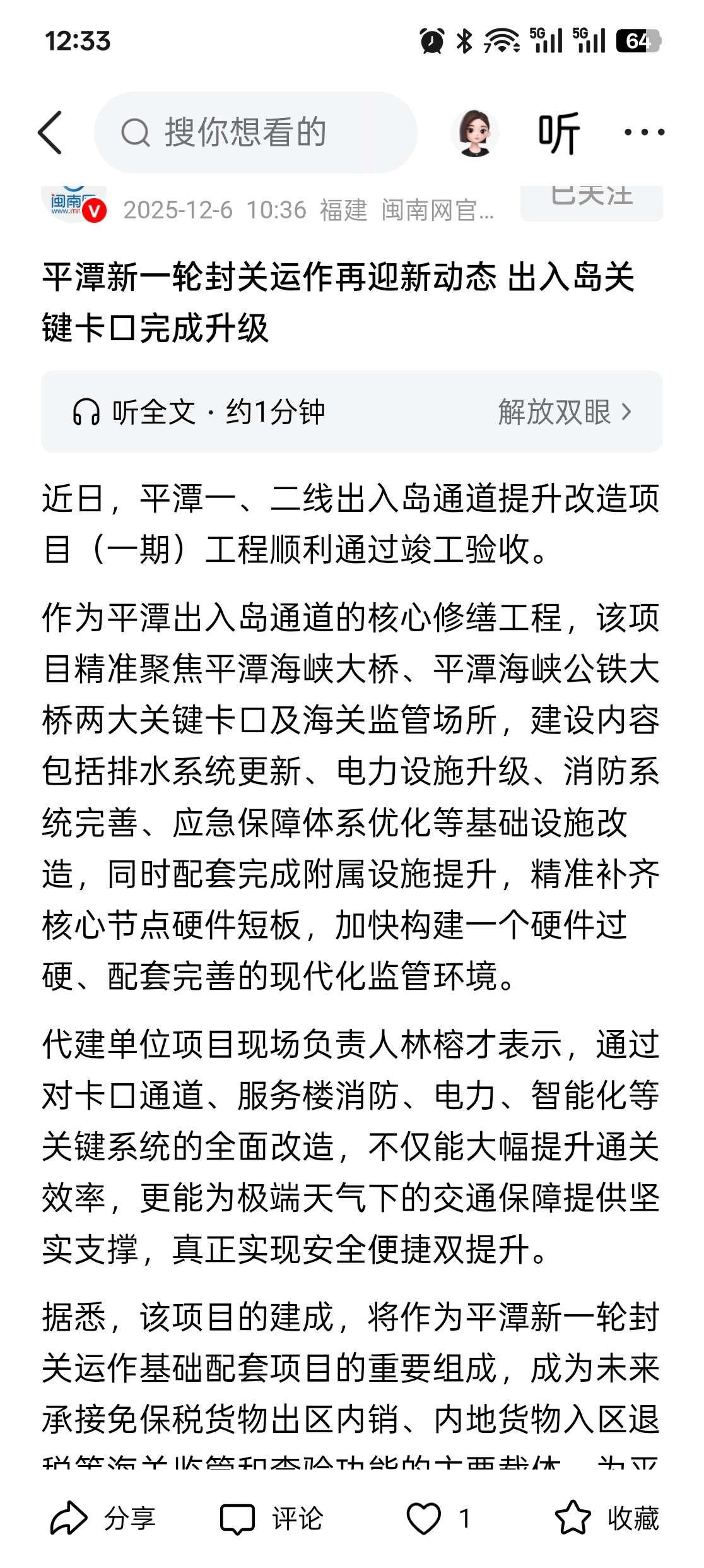 $海峡创新(SZ300300)$ 平潭又有新进展,通关出入关口,升级完成!!不远了,离平潭封关!!!