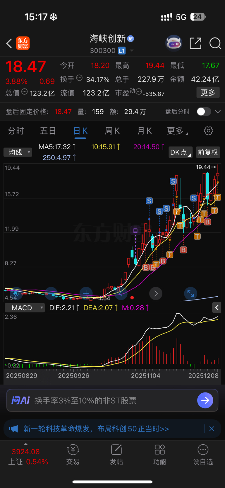 $海峡创新(SZ300300)$ 明天全部清仓,理解就到这了