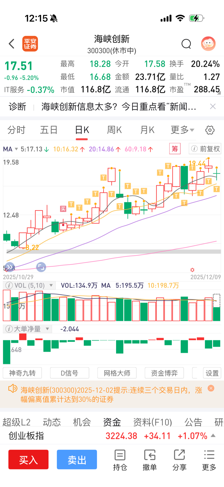 $海峡创新(SZ300300)$ 缩量,明天继续新高