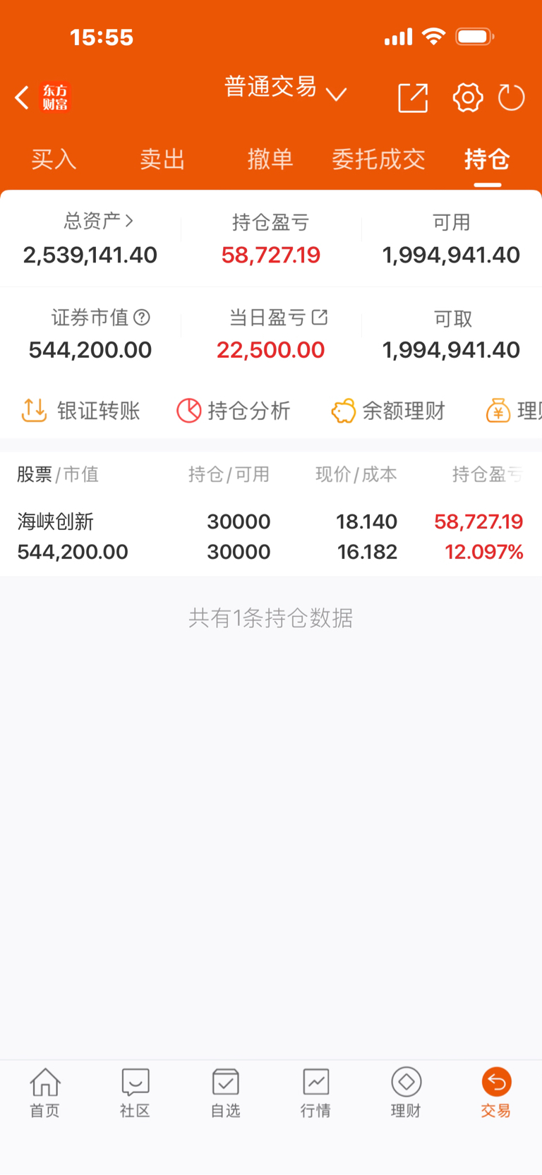 今日无操作:持有:海峡创新