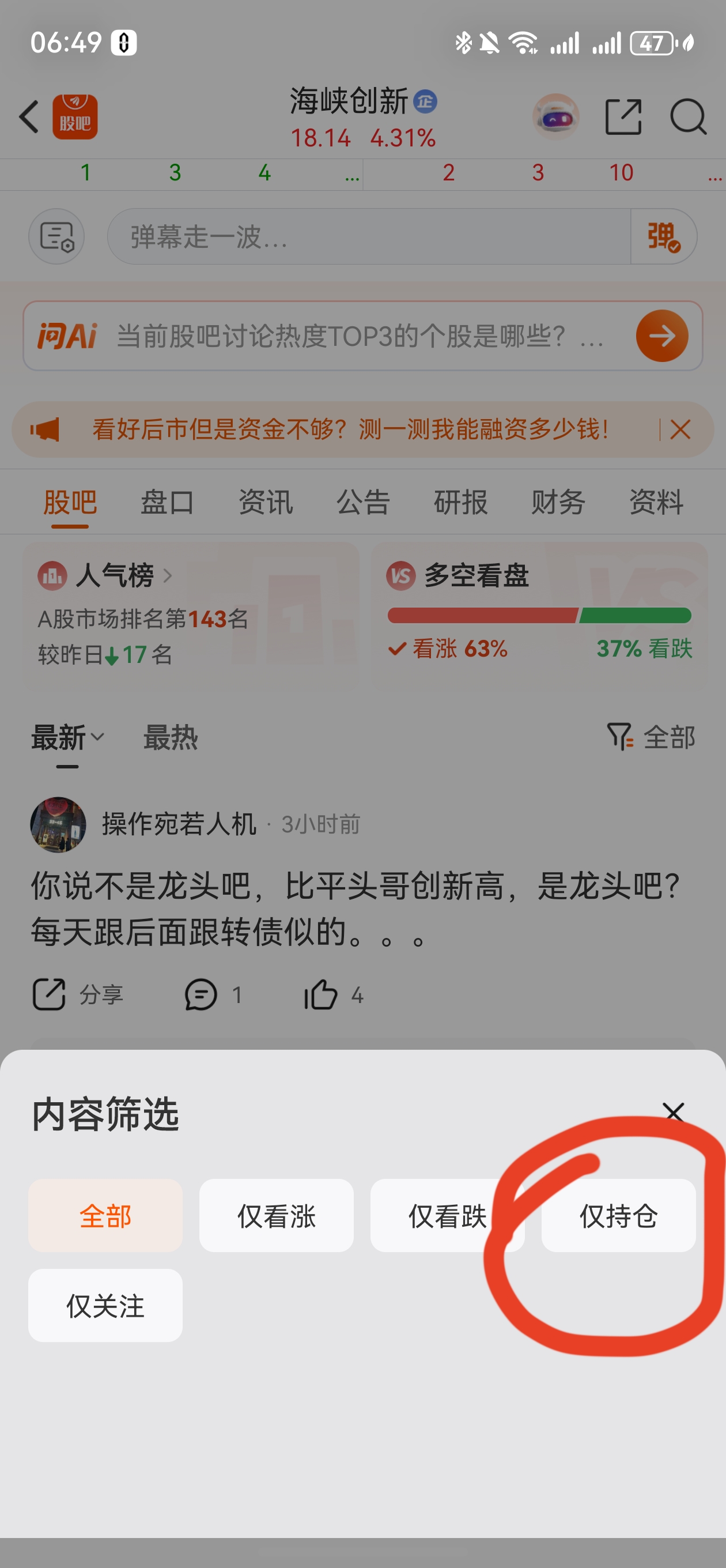 $海峡创新(SZ300300)$ 把筛选调成仅持仓就行,就看不到空军们乱叫了