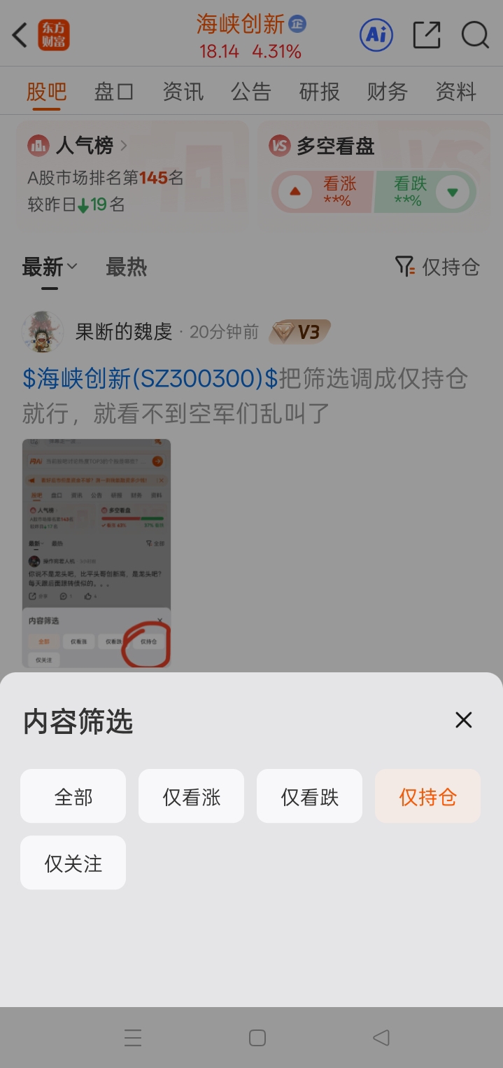 $海峡创新(SZ300300)$ 只看仅持仓,空军突然没有了