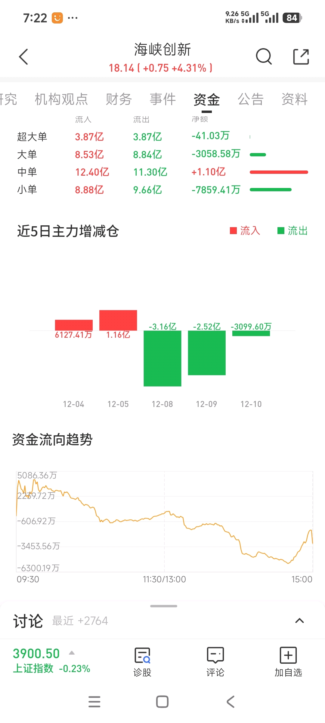 $海峡创新(SZ300300)$ 这几天资金尽流出3个多亿,今天最好稳住