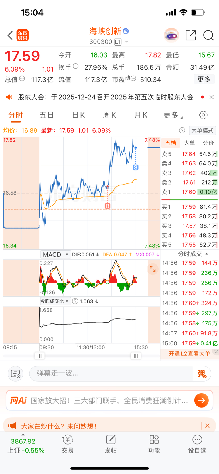 $海峡创新(SZ300300)$ 感觉明天有溢价,踢错了,平潭都封了