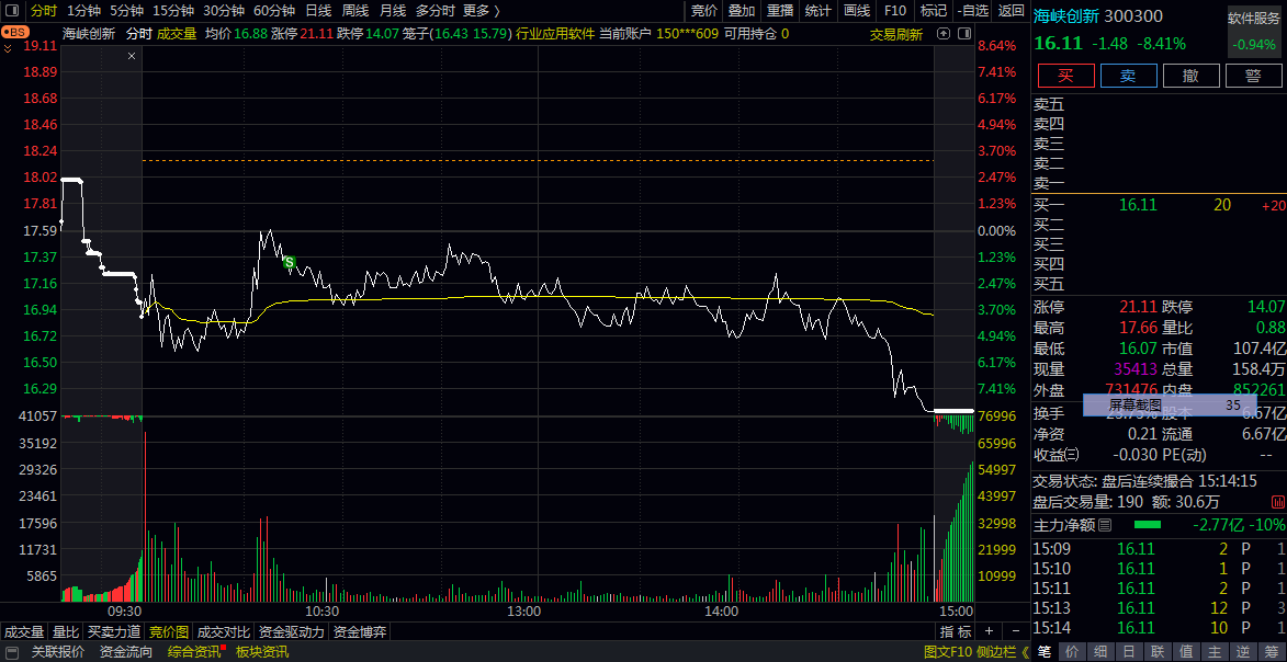 海峡创新高位疯狂出货,大家不要追了