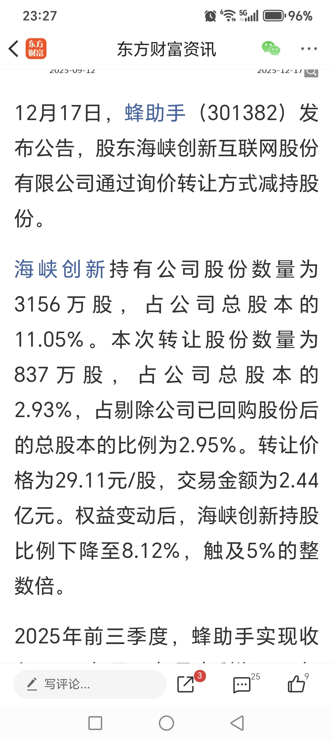 $海峡创新(SZ300300)$ 董秘这都不报道不公告???