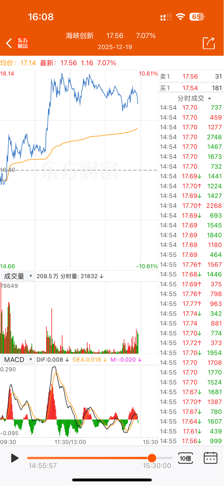$海峡创新(SZ300300)$ 平潭是55分10秒的时候开始砸,海峡是55分50秒的时候开始砸,纯纯带下来的,周一平潭不是巨量跌停的话,海峡都会领涨,如果再来一波,大概率海峡龙头了,不过也可能是结束了,得看今天买进的大资金是哪路资金。