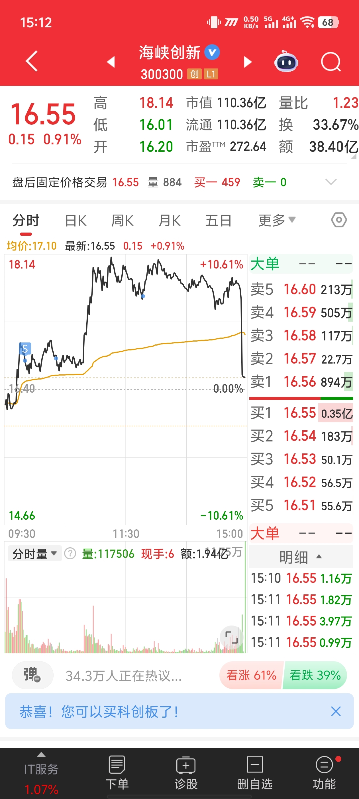 $海峡创新(SZ300300)$ 还好没有接回,躲过一劫