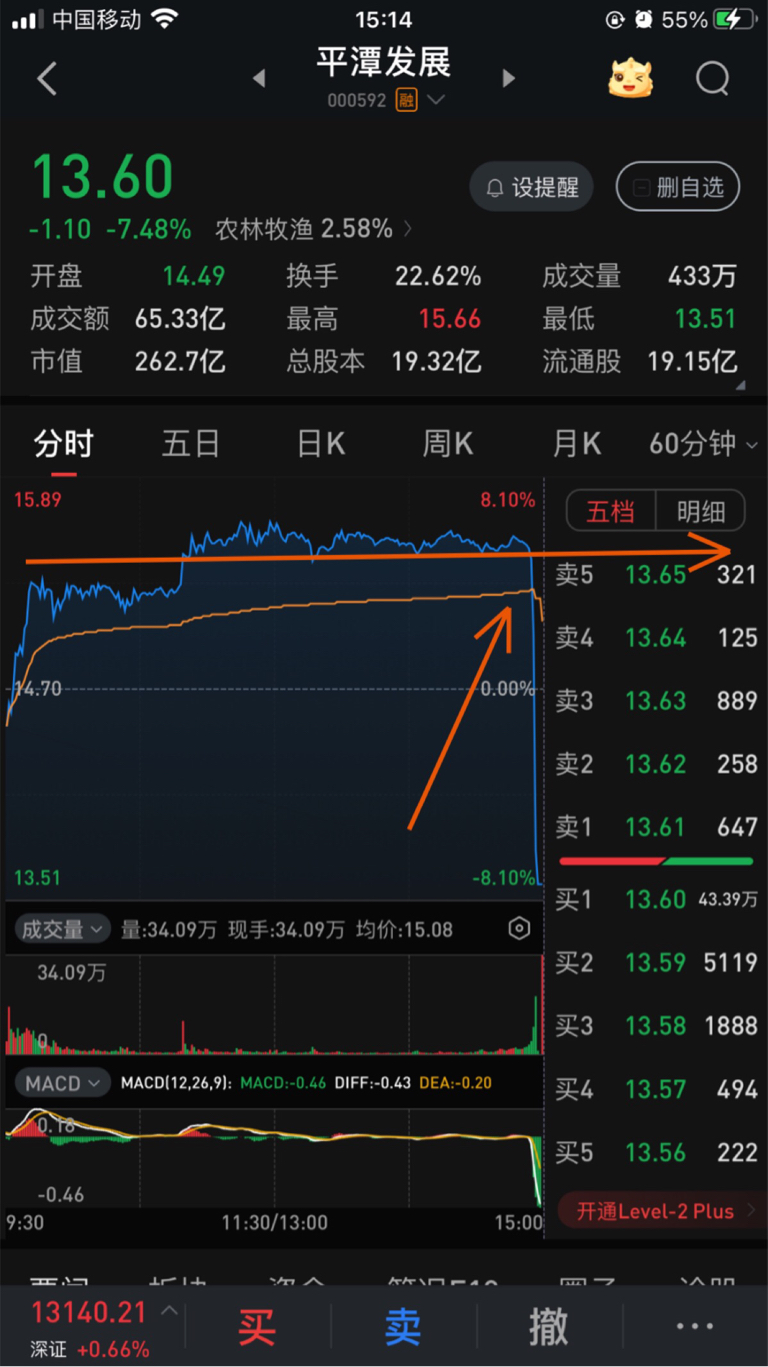 $海峡创新(SZ300300)$ $平潭发展(SZ000592)$ 平潭尾盘3分钟来跳水,应该是假摔!一直在5个来点涨幅边波动,全天平均价上稳稳运行!特地选最后3分钟来跳?真要出货,没必要选这3分钟,而且板块没跳,没理由这时候来跳,所以大概率是假的!收盘收在10天线,尾盘巨量成交!还拖累了海峡回落了8个点。海峡走的挺稳当的,17.7边,最后被平潭几分钟跳引发了集中抛售,尾盘也大量成交。两股尾盘成交历史之最!有故意砸引发散户恐慌抛售捡筹码之嫌。