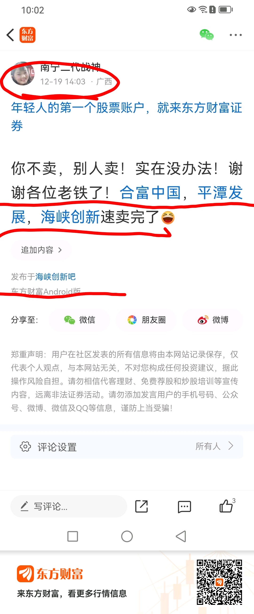 温馨提示: 1.根据《证券法》规定,禁止编造、传播虚假信息或者误导性信息,扰乱证券市场;2.用户在本社区发表的所有资料、言论等仅代表个人观点,与本网站立场无关,不对您构成任何投资建议。用户应基于自己的独立判断,自行决定证券投资并承担相应风险。《东方财富社区管理规定》