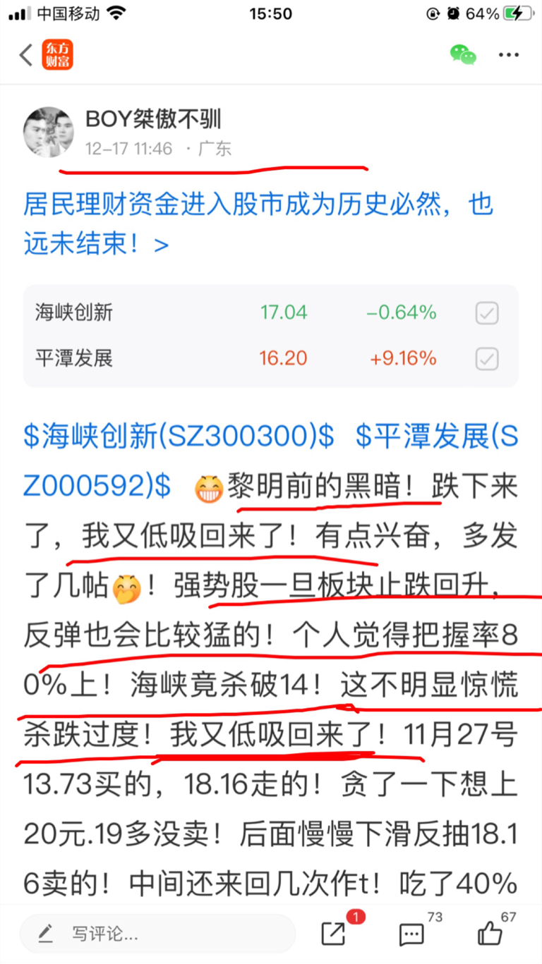 $海峡创新(SZ300300)$ 你们这帮吃矢的够,还在这汪!12月17号说板块最后一跌14元边看涨上来的!全是获利盘!涨到几次18,老子前几天就讲了18的强压力位,强压力位,没那么容易上的,冲到这附近不上就高抛再说!天天冲几个点,前天18,昨天.17.9.今天17.8,别人能抛你不能抛?顺着形势做,别跟个2比样,脑子灵活点,要玩也是均线边低吸,冲压力位不上反手卖,如冲上就拿着边走边看。万一形势不对也能及时出