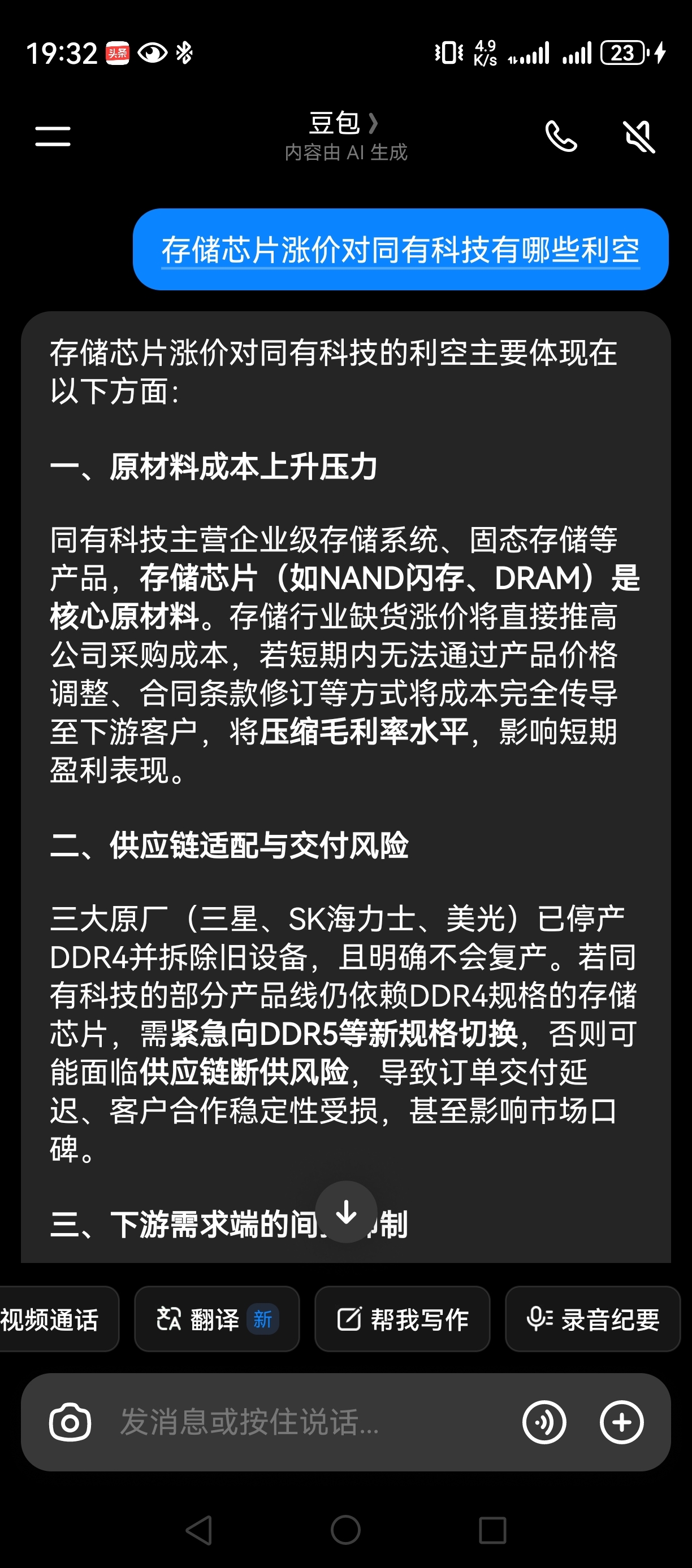 存储芯片涨价对同有科技科技有利空,难怪资金砸盘出货