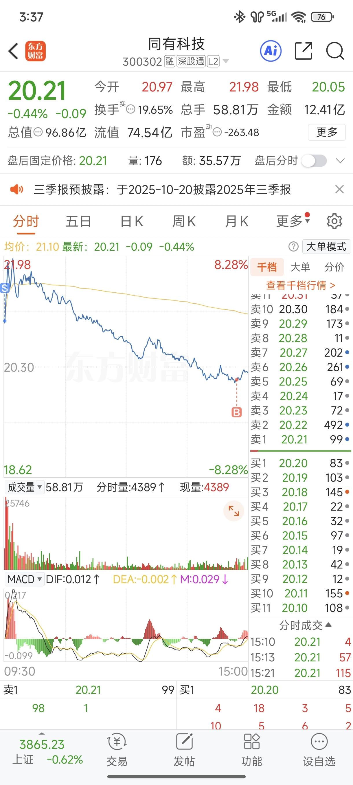 $同有科技(SZ300302)$ 早上没看懂,卖飞一大截,靠!