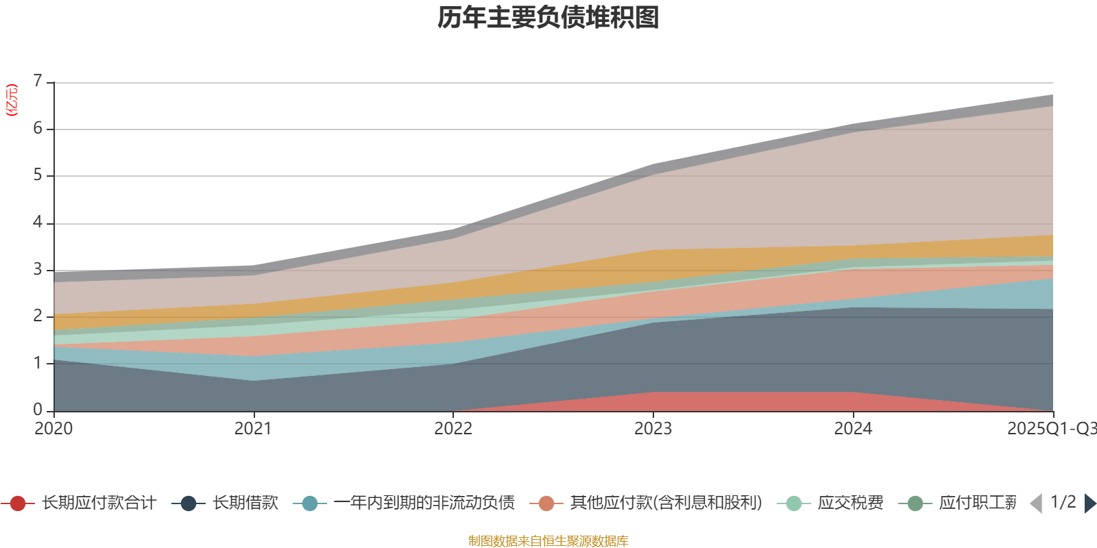 负债重大变化方面,截至2025年三季度末,公司一年内到期的非流动负债较上年末增加259.62%,占公司总资产比重上升2.65个百分点;长期应付款合计较上年末减少100%,占公司总资产比重下降2.39个百分点;其他应付款(含利息和股利)较上年末减少54.31%,占公司总资产比重下降2.11个百分点;长期借款较上年末增加20.12%,占公司总资产比重上升1.64个百分点。