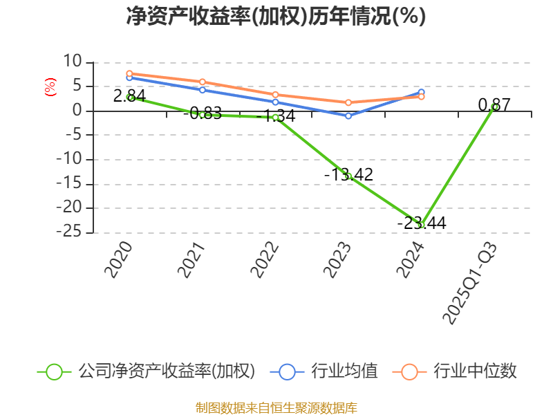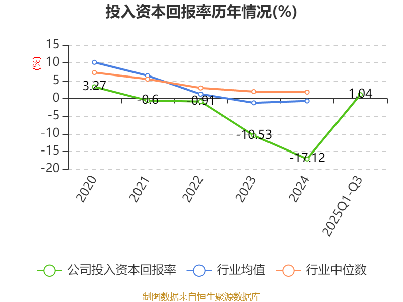 盈利能力方面, 2025年前三季度公司加权平均净资产收益率为0.87%,同比下降1.46个百分点。公司2025年前三季度投入资本回报率为1.04%,较上年同期下降1.13个百分点。
