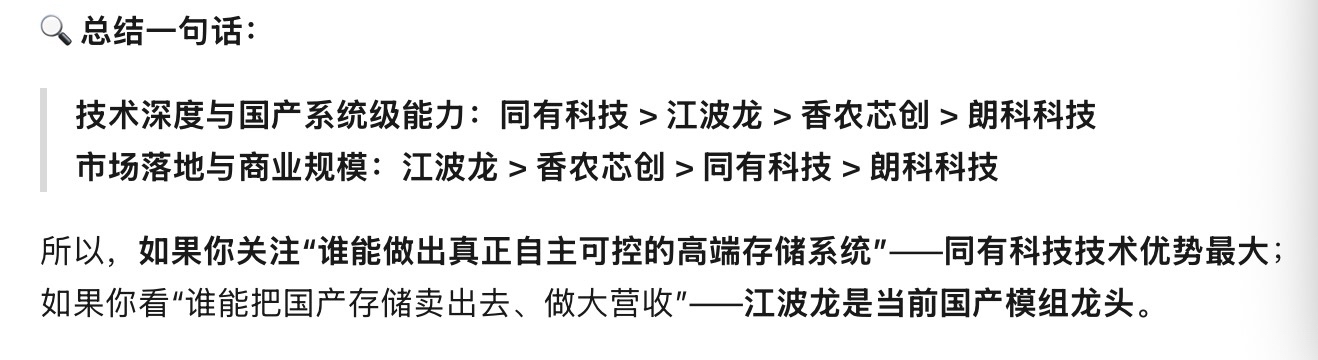 同有科技你的技术深度与国产系统级能力:同有科技>江波龙>香农芯创>朗科科技,中美